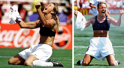 I bet you were starting to think I only featured women from back in the day . . . well hopefully you will be pleasently surprised with this week's feature. Brandi Chastain who most of you know plays professional soccer and is famous for taking her shirt off after scoring the fifth kick in the Women's World Cup and beating China.